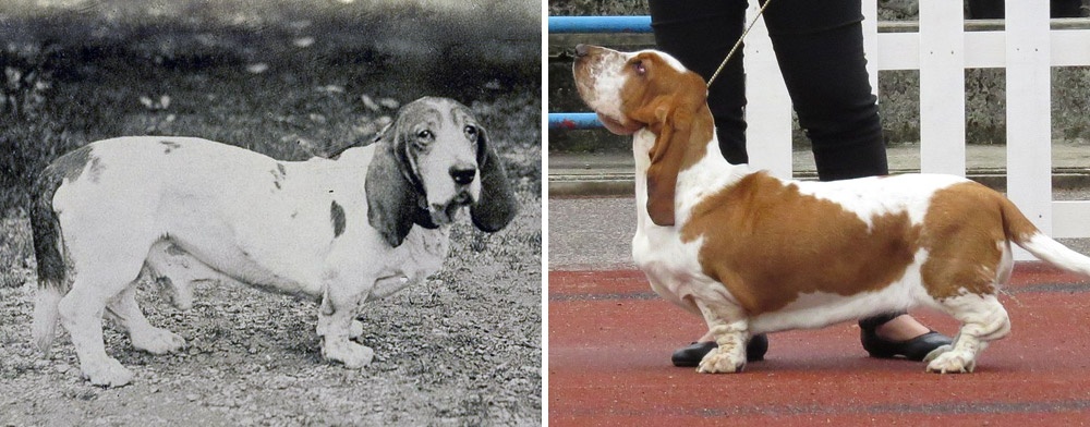 Ciało Basset Hounda stało się niższe, tylne łapy krótsze, a uszy znacznie dłuższe. Skóra tego zwierzaka ma aktualnie znacznie więcej fałd niż kiedyś.