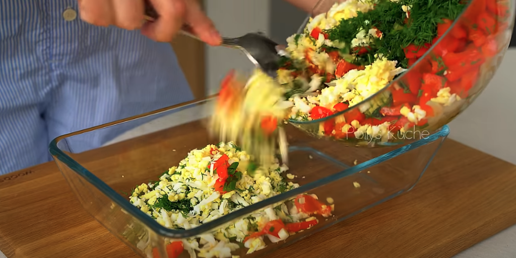 Wstaw naczynie do piekarnika nagrzanego do 180°C na 40-50 minut, aż masa jajeczna się zetnie, a ser ładnie się zrumieni. Po upieczeniu wyjmij z piekarnika, pozostaw na chwilę do ostygnięcia i podawaj. Możesz podawać z dodatkiem ulubionego sosu lub śmietany.