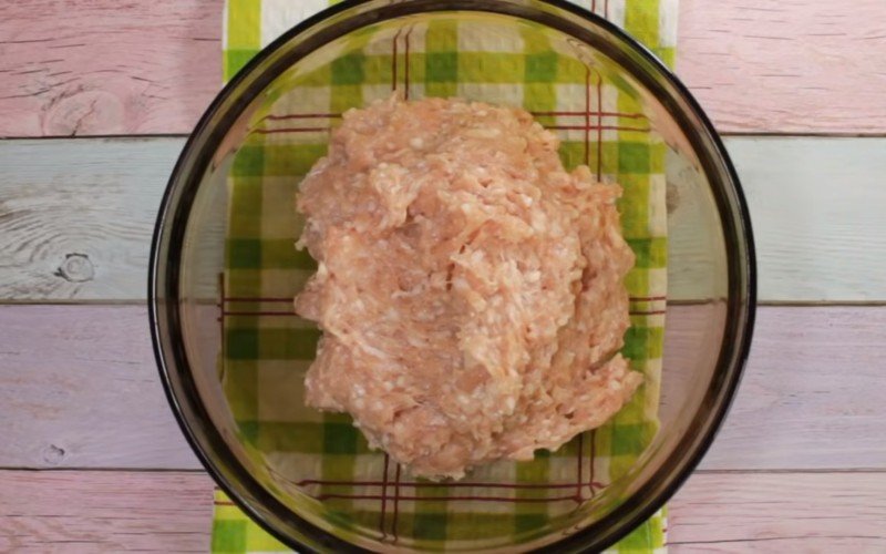 1.Do miski włóż drobiowe mięso mielone i przypraw go pieprzem , solą oraz włoskimi ziołami.