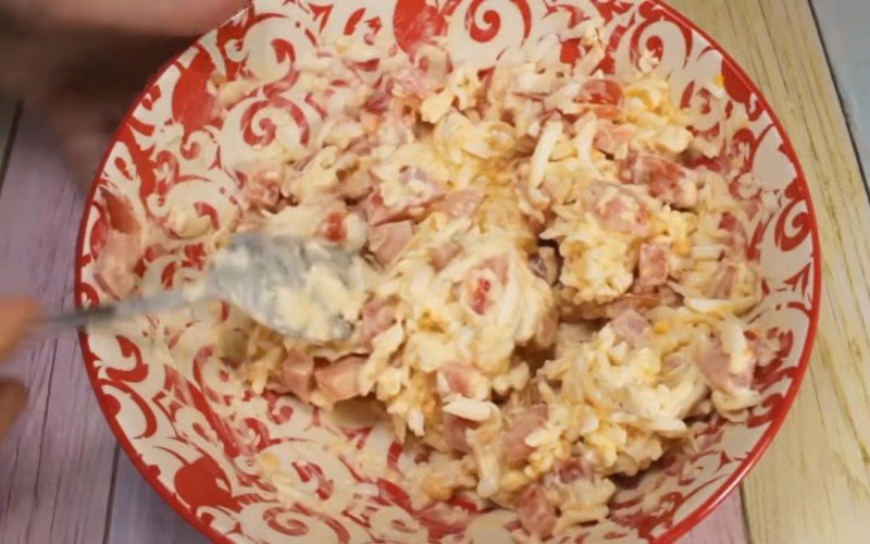 4.Przypraw pieprzem oraz solą , dodaj majonez. Wszystko dokładnie wymieszaj , aby powstała jednolita masa.