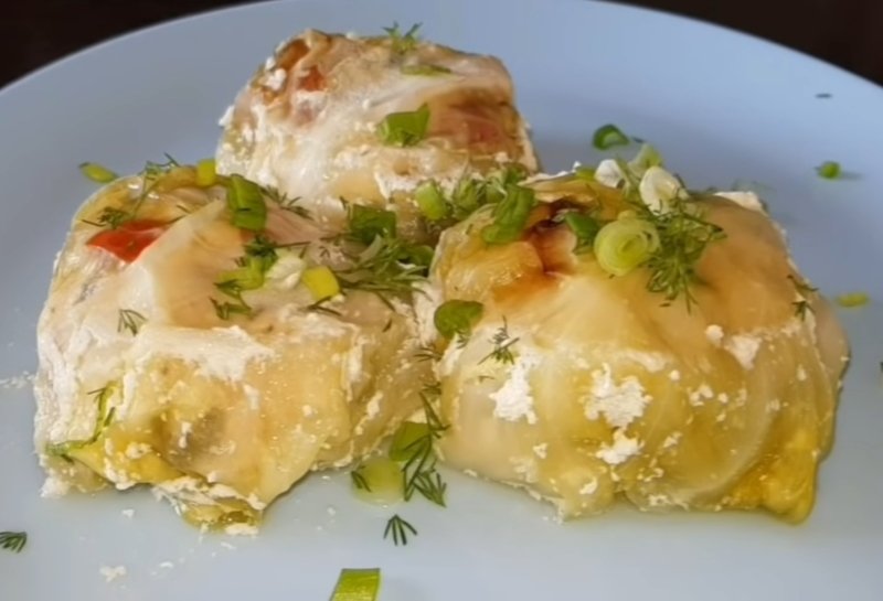 Pierwszym krokiem jest ugotowanie liści młodej kapusty w osolonej wodzie. Następnie liście kapusty musisz schłodzić, a twarde części odciąć.
