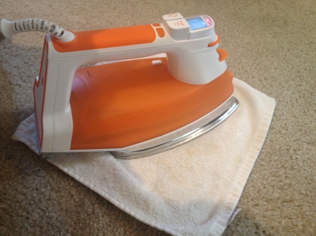Ten sposób sprawdza się w przypadku plam pochodzenia organicznego. Nie zaleca stosowania się go w przypadku zabrudzeń kolorowych, na przykład zrobionych przez długopis. Potrzebna będzie buteleczka ze spryskiwaczem, biały ocet i woda (proporcja 1:2). Plamę spryskajcie, połóżcie ręczniczek i przyłóżcie żelazko (nastawione na program prasowania parą) na 30 sekund. Jeżeli zajdzie potrzeba, powtórzcie.