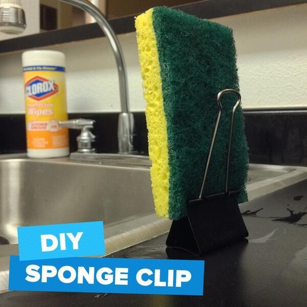#3 Użyj klipsów do papieru jako podstawki na gąbkę
