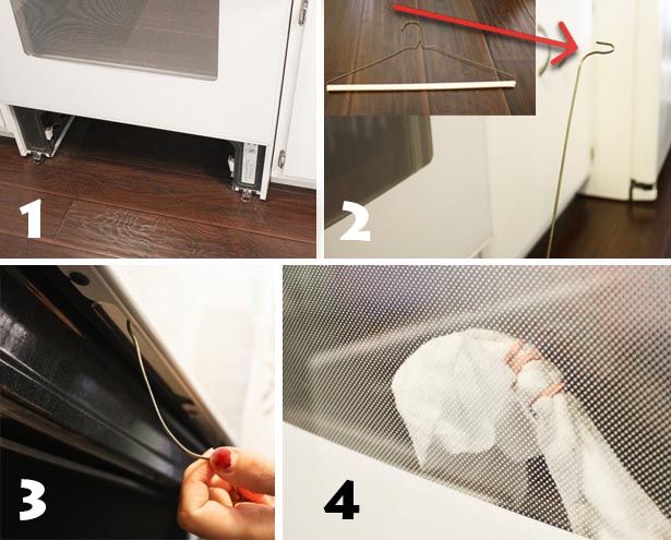 #7 Użyj wieszaka do wyczyszczenia szybki w piekarniku