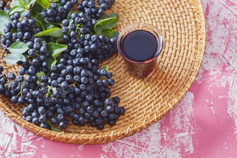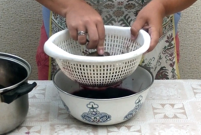Gdy liście i aronia ostygną połóż je w durszlaku. Odcedź z nich sok poprzez delikatne naciskanie ich łyżką.