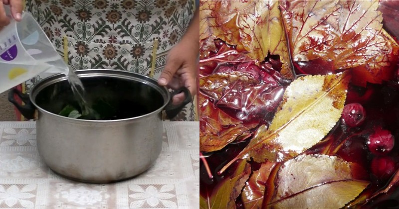Dokładnie umyj wszystkie liście oraz aronię i włóż je do dużego rondla.