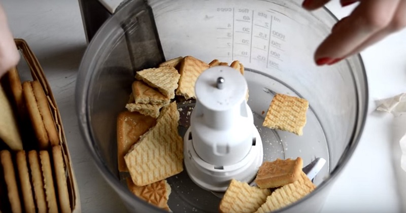 1.Za pomocą blendera lub tłuczka zmiel ciasta na miazgę , konsystencja powinna przypominać mąkę , wymieszaj je z masłem.