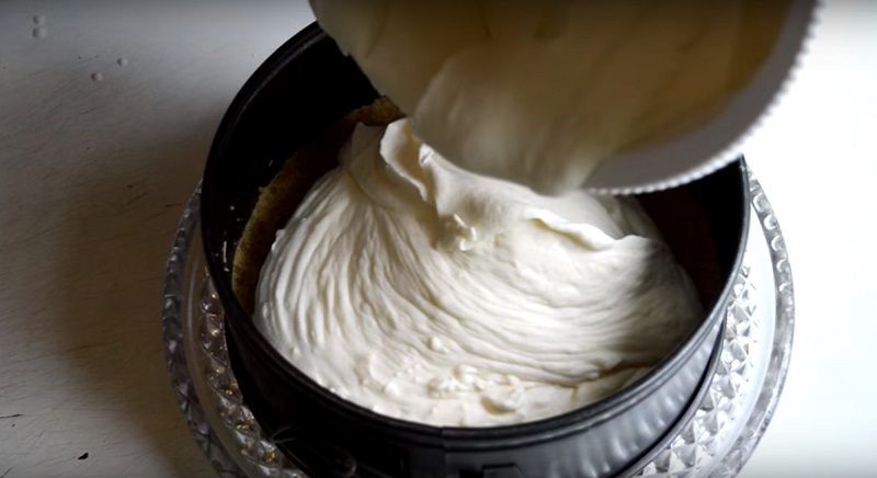5.Uzyskaną masę wyłóż na przygotowany wcześniej spód z ciastek . Odstaw do lodówki na 2-3 godzin, aby konsystencja nabrała właściwą konsystencje.