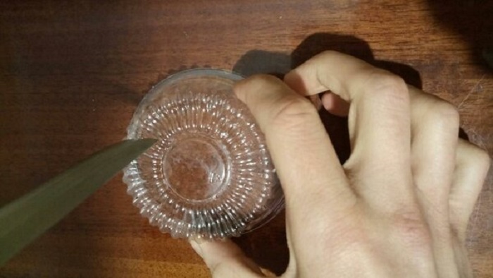 Jeśli nie znalazłeś odpowiedniego pojemnika, po prostu odetnij kawałek plastikowej butelki . Zrób kilka otworów w misce z podgrzewanym nożem lub igłą.