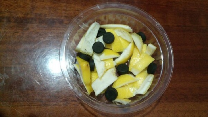 Umieść w pojemniku skórkę z jedną cytryną i płytkę z węglem aktywnym. Pochłaniacz zapachów z efektem odwaniania jest gotowy!